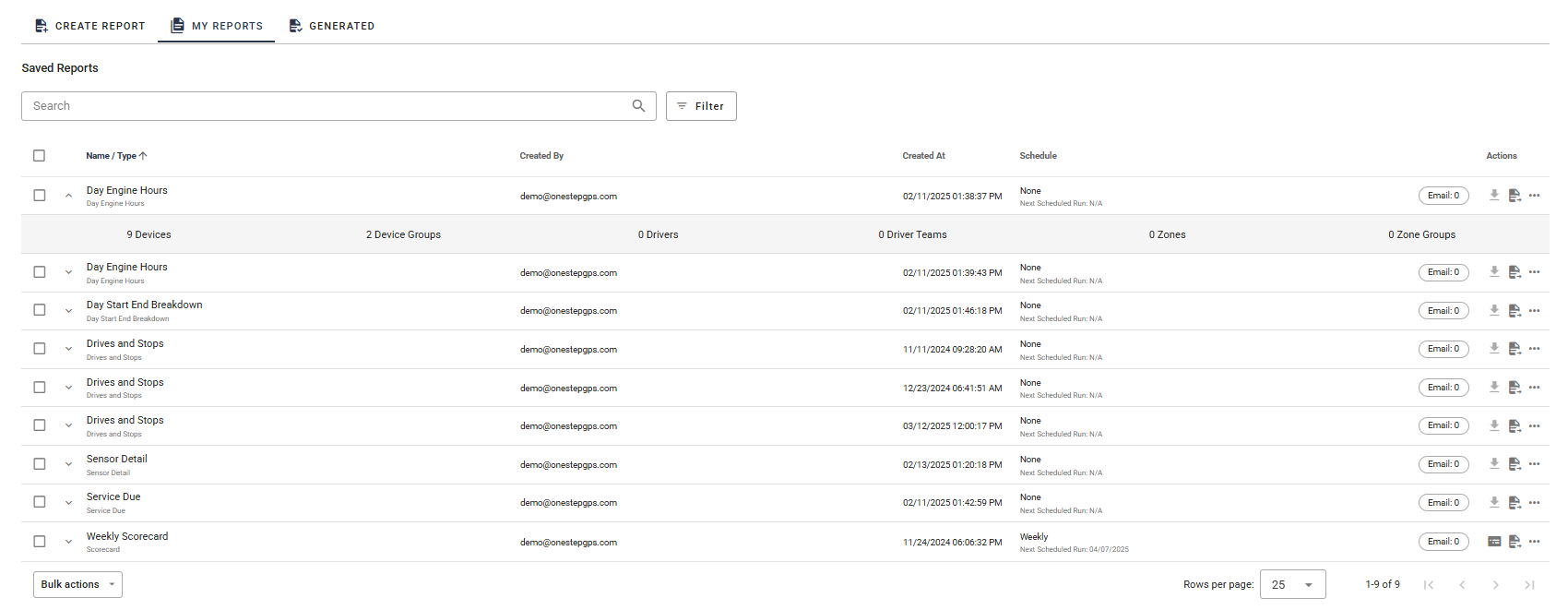 Filtering - Find your saved reports faster by generation date, report creator, and report frequency.